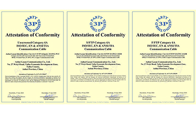 近日,继获得CAT6A U/UTP 3P证书后,安徽深联通讯有限公司网络线、电源线多种规格产品又获得3P性能认证、CE认证,以及CB认证。 CAT6A F-FTP和CAT6A S/FTP网络线顺利通过ISO/IEC,EN &...