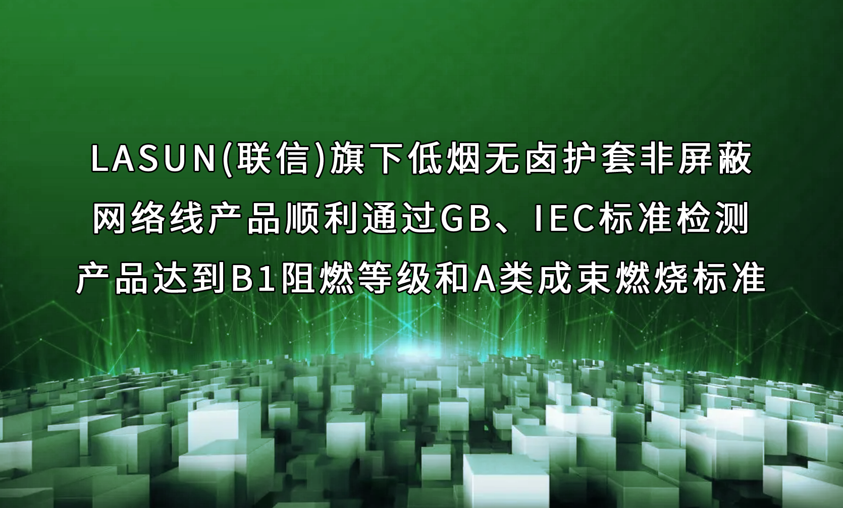 LASUN(联信)旗下低烟无卤护套非屏蔽网络线产品顺利通过GB标准B1阻燃等级测试